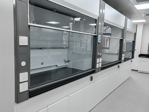 (1)上半部移門衣柜:采三層結構類型,外膜為鋼殼,外膜為實驗操作室專屬防酸堿度6mm厚抗倍特板,極具防潮濕濕、防彎曲變形、抗沖擊性等耐生銹性;而對于還要在臺面板使用洗衣機清洗的排風柜,于外襯板做到抗潮和抗生銹要.殼體與內襯間半層,可裝下水、電、氣物的管道系統,并可確保移門衣柜密封性與防火。